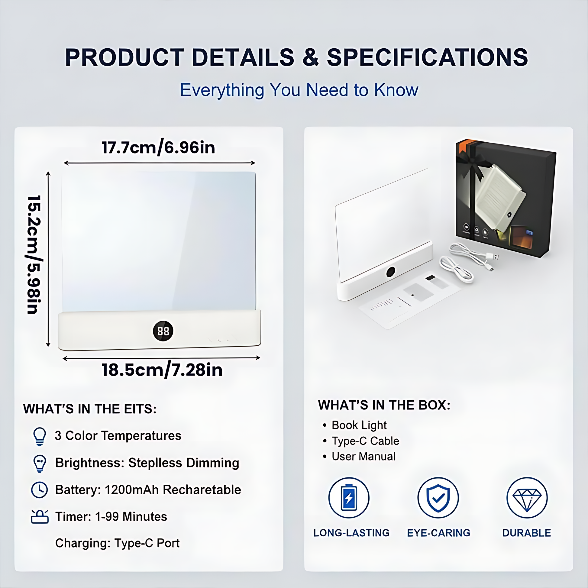 - 🌟 Brillo regulable sin niveles fijos — Ajusta la intensidad exacta que necesitas para una lectura cómoda, sin fatigar la vista.
